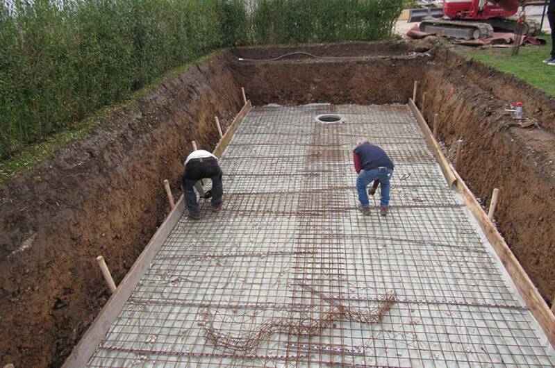 Diepte op ongeveer 1,75 m1 i.v.m. met de betonvloer en randafwerking.