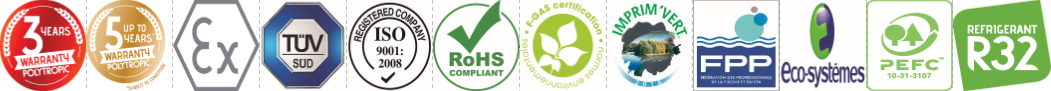 24,20 ~ 7,80 kW, 230 V of 380 V, COP 10,80 ~ 5,40, ABS behuizing, voor zwembadinhoud 105-130 m³, werkzaam vanaf een buitenlucht temperatuur van -15°C